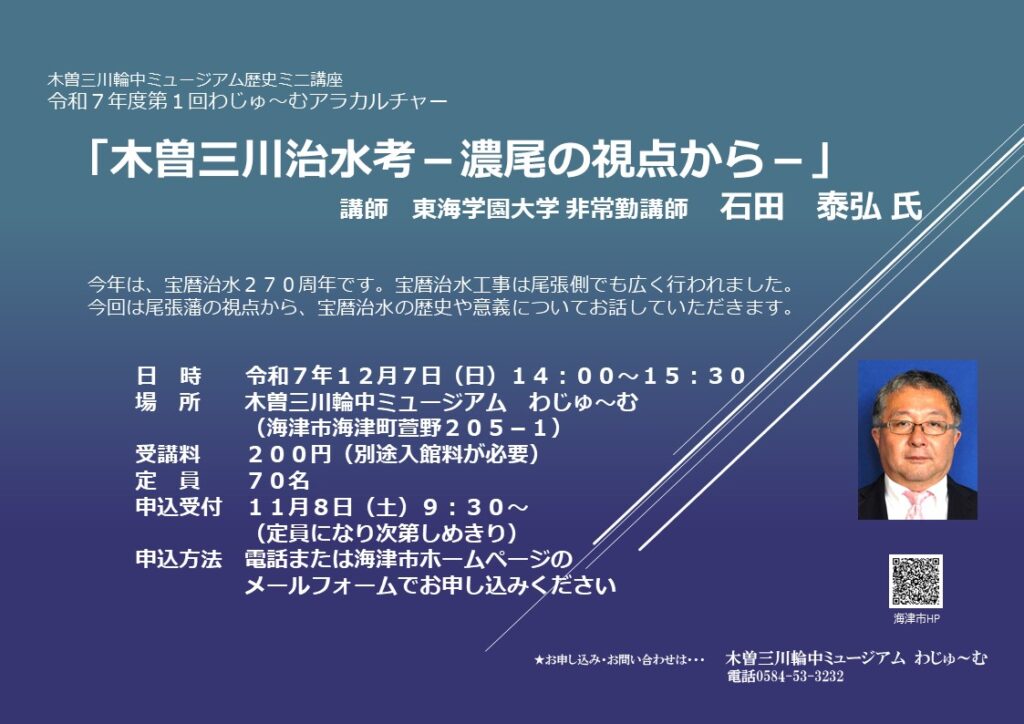 今年は宝暦治水完工270周年です。宝暦治水は尾張側でも広く行われました。今回は尾張藩の視点から、宝暦治水の歴史や意義についてお話していただきます。